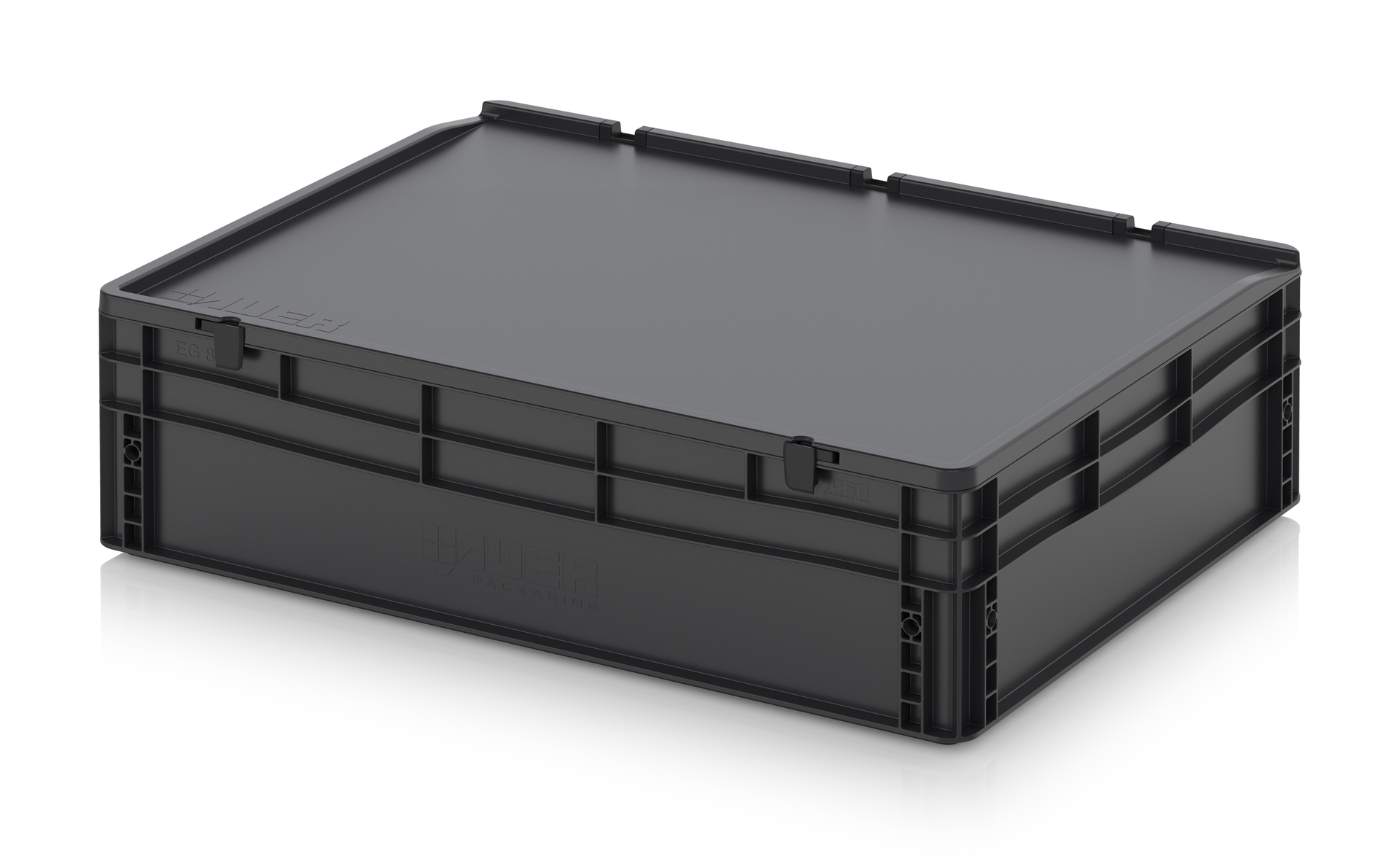 Евроконтейнер с ESD-защитой производства компании AUER Packaging изготавливается из антистатической пластмассы, что делает его пригодным, в частности, для надежного хранения и транспортировки электронной продукции.