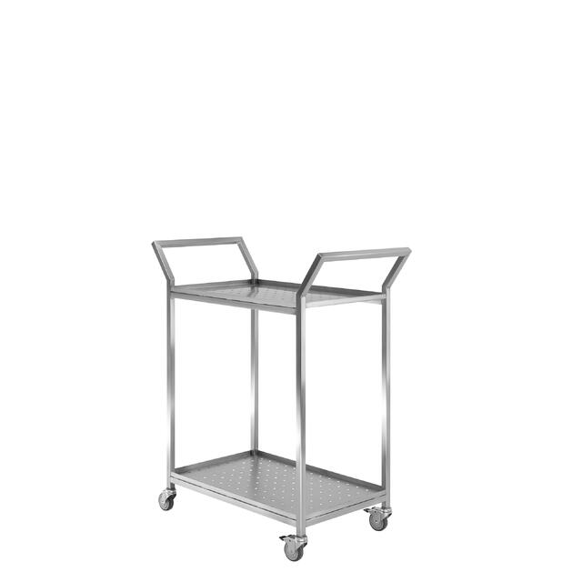 Тележка из нержавеющей стали для чистых помещений​ предназначена для перемещения продукции, комплектующих, приборов, оборудования. Тележка оснащена двумя полками, а также четырьмя поворотными колесными опорами диаметром 75 мм, две из которых со стопорным механизмом. Конструкция обладает высокой стойкостью к термическим и механическим нагрузкам. Распределенная нагрузка на полку — до 40 кг. На поверхности полок тележки ТНЧ предусмотрена перфорация. Вариант полок без перфорации обозначается ТНЧС.