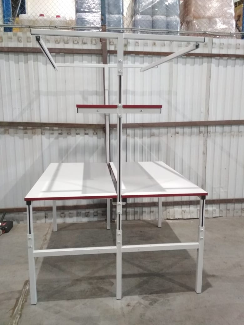 СПО Стол промышленный металлический остров — состоит из двух зеркально расположенных столов на едином каркасе, что позволяет оптимально использовать производственное пространство. Стол промышленный металлический остров поставляется в комплекте с задними стойками. Модульная конструкция стола позволяет оснастить его дополнительным оборудованием: подвесными металлическими тумбами, перфорированными панелями, электропанелями, планками для крепления лотков, полками для приборов оборудования, освещением рабочей поверхности, угловыми столами и другим дополнительным оборудованием и оснащением.