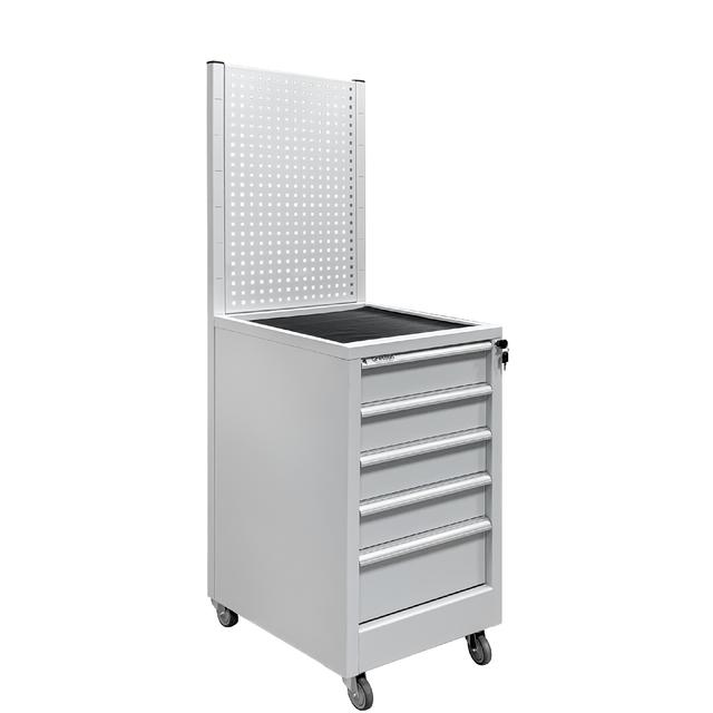 Стойка оснащена центральным замком для индивидуального доступа. Каркас и ящики изготовлены из листового металла для увеличения эксплуатационного ресурса и повышения надежности. Ящики защищают рабочие материалы, инструменты от загрязнения и сохраняют их в исходном состоянии. Ручки изготовлены из алюминиевого профиля с анодированным покрытием и боковыми пазами для установки обозначения (маркировки) ящиков по их прямому назначению (подразделение организации, документация, инструменты, материалы и т.д.).